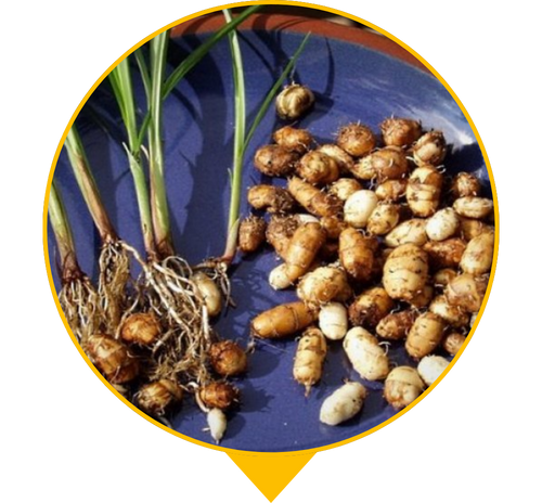 “Лумарс” — це рослина, що під землею формує дрібні їстівні бульби з природною солодкістю та легким горіховим смаком. Ідеальна заміна горіхам не викликає алергії! Вони схожі на маленькі корисні горішки, які можна їсти сирими, підсушеними, додавати в йогурт, каші, смузі або перемелювати на солодке “борошно” для корисних десертів. Це натуральний продукт без хімії, який багатий на клітковину та енергію.