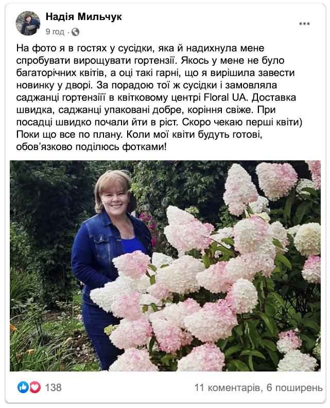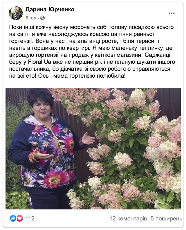 Клієнти діляться відгуками про гортензії від Floral UA