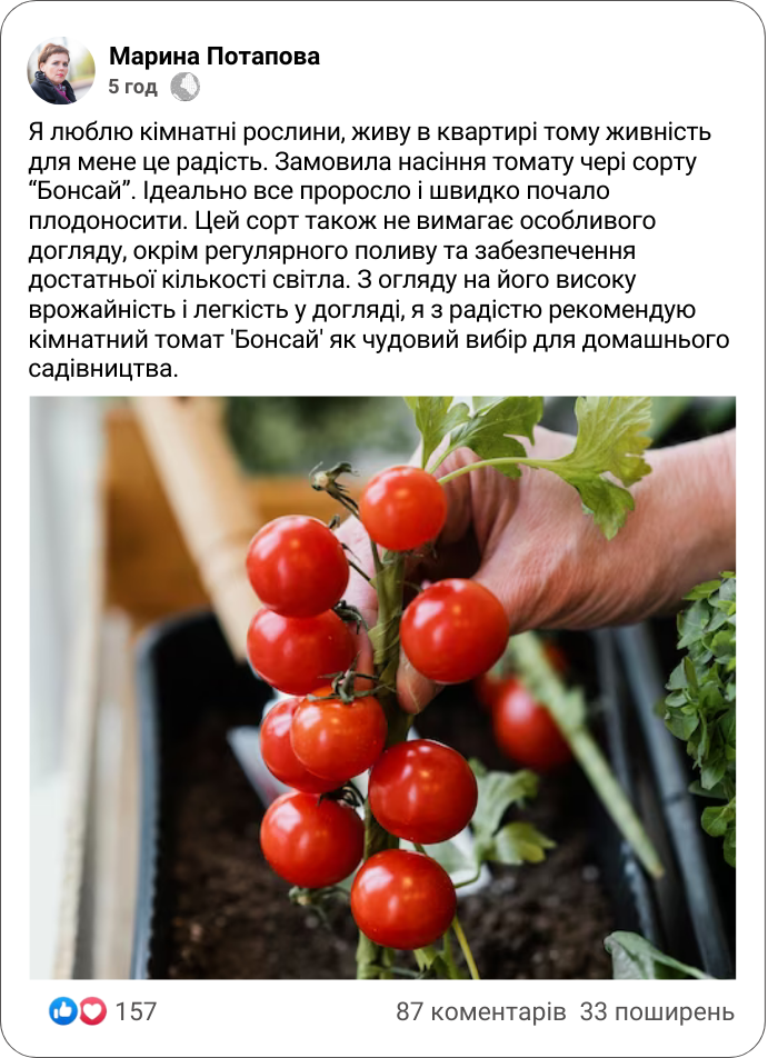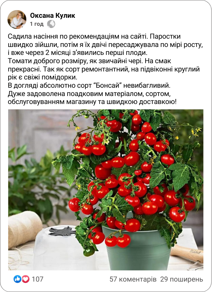 Інструкція для посадки томату чері сорту "Бонсай":
