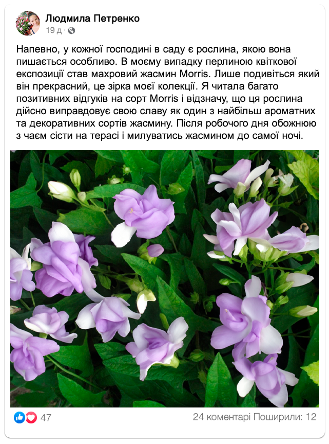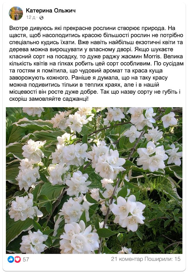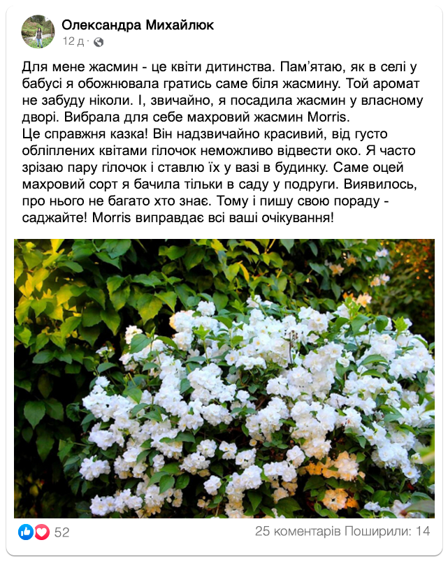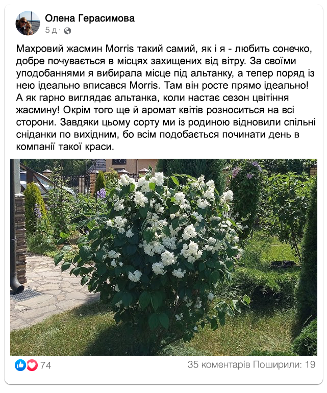Подивіться, як гарно квітне гібридний жасмин “Morris” в садах наших клієнтів!