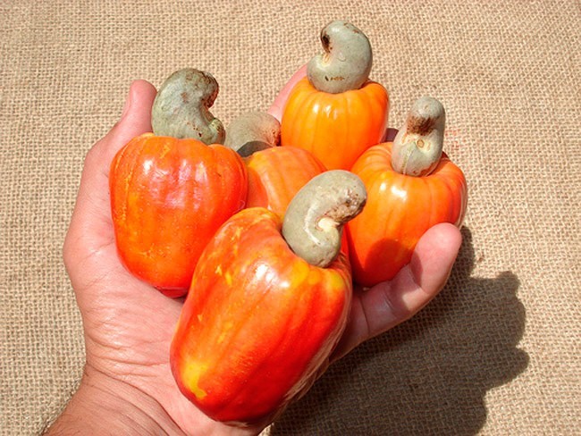 Насправді ця «груша» є плодоніжкою великої форми, а безпосередньо плодом кешʼю є той самий наріст, який розташовується внизу.