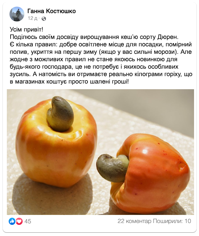 Кешʼю Дюрен: вирощувати не складніше, ніж волоський горіх