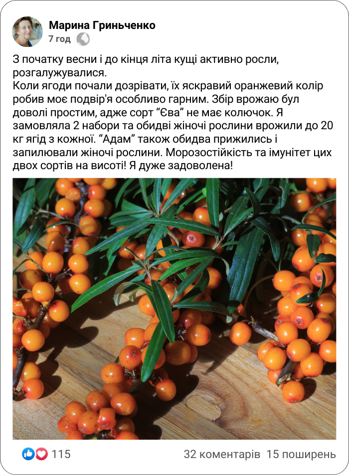 "Єва" - одна серед найкращих жіночих сортів обліпихи