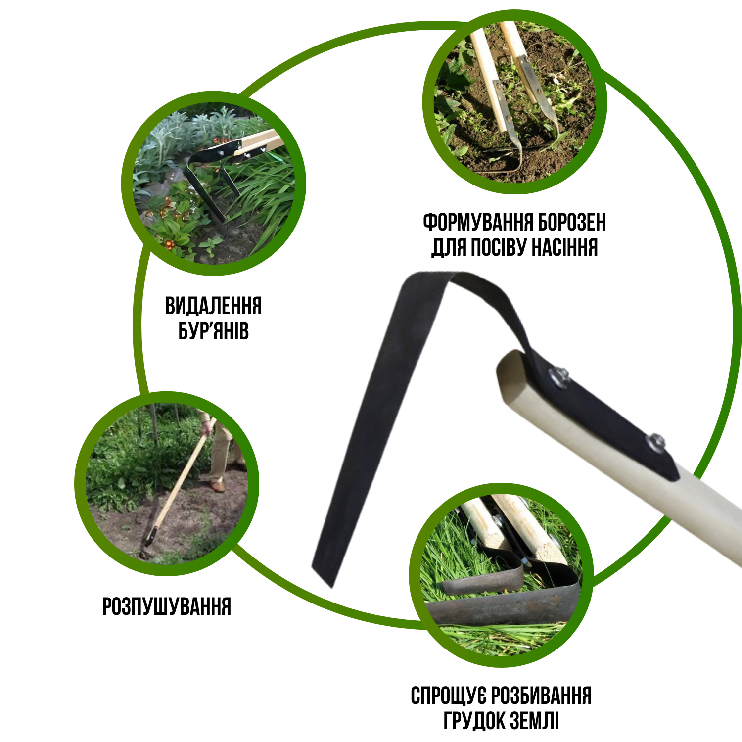 Основне призначення такого інструменту полягає у формуванні клумб та грядок. Також використовувати плоскоріз Фокіна в Україні можна для розпушування, підкошування та прополювання.