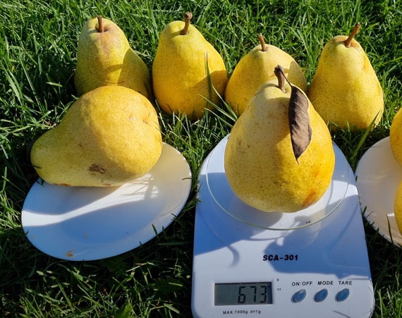| Плоди | Великі, вагою від 250 до 300 грамів, з видовженою формою. Шкірка гладка, жовто-зелена з румʼянцем. |