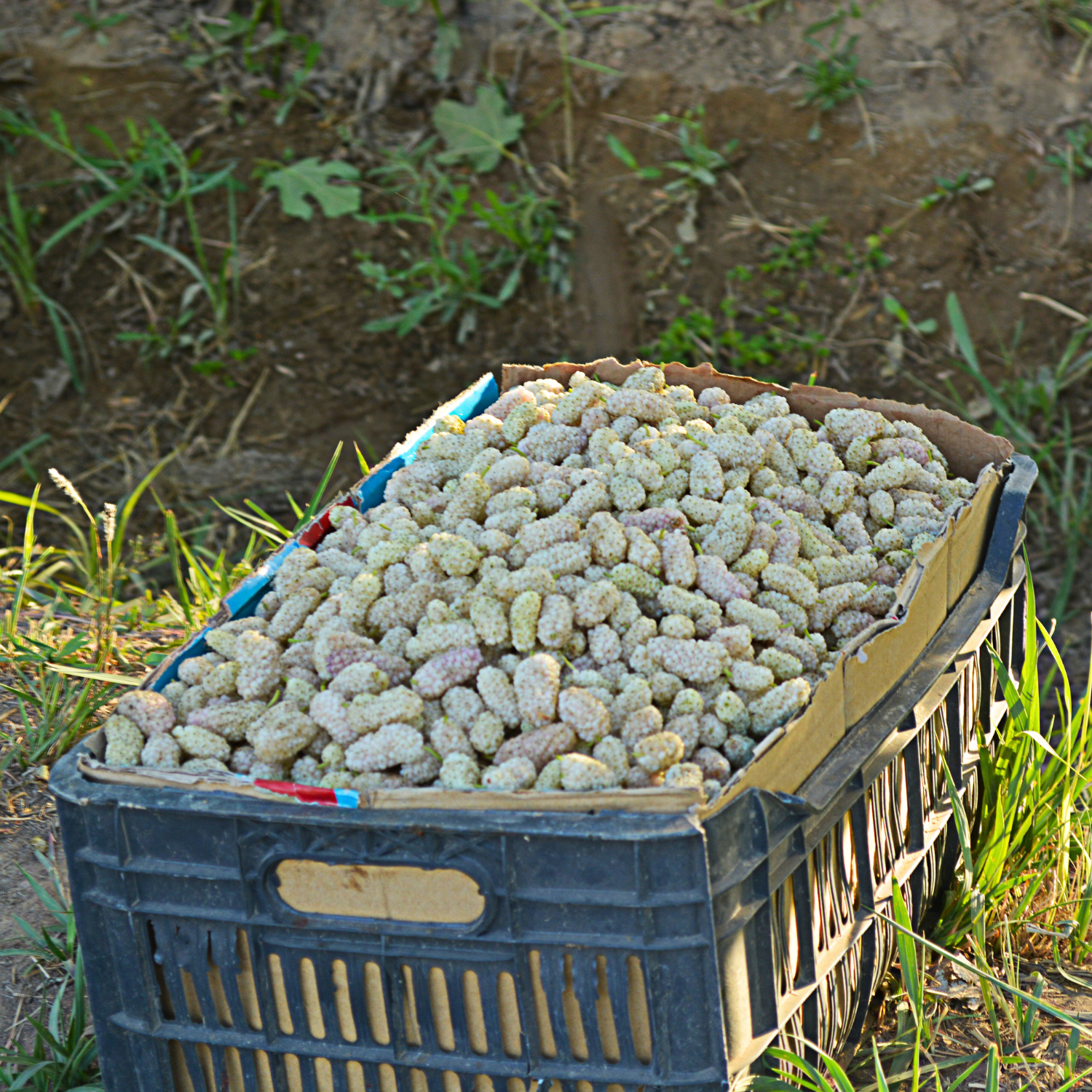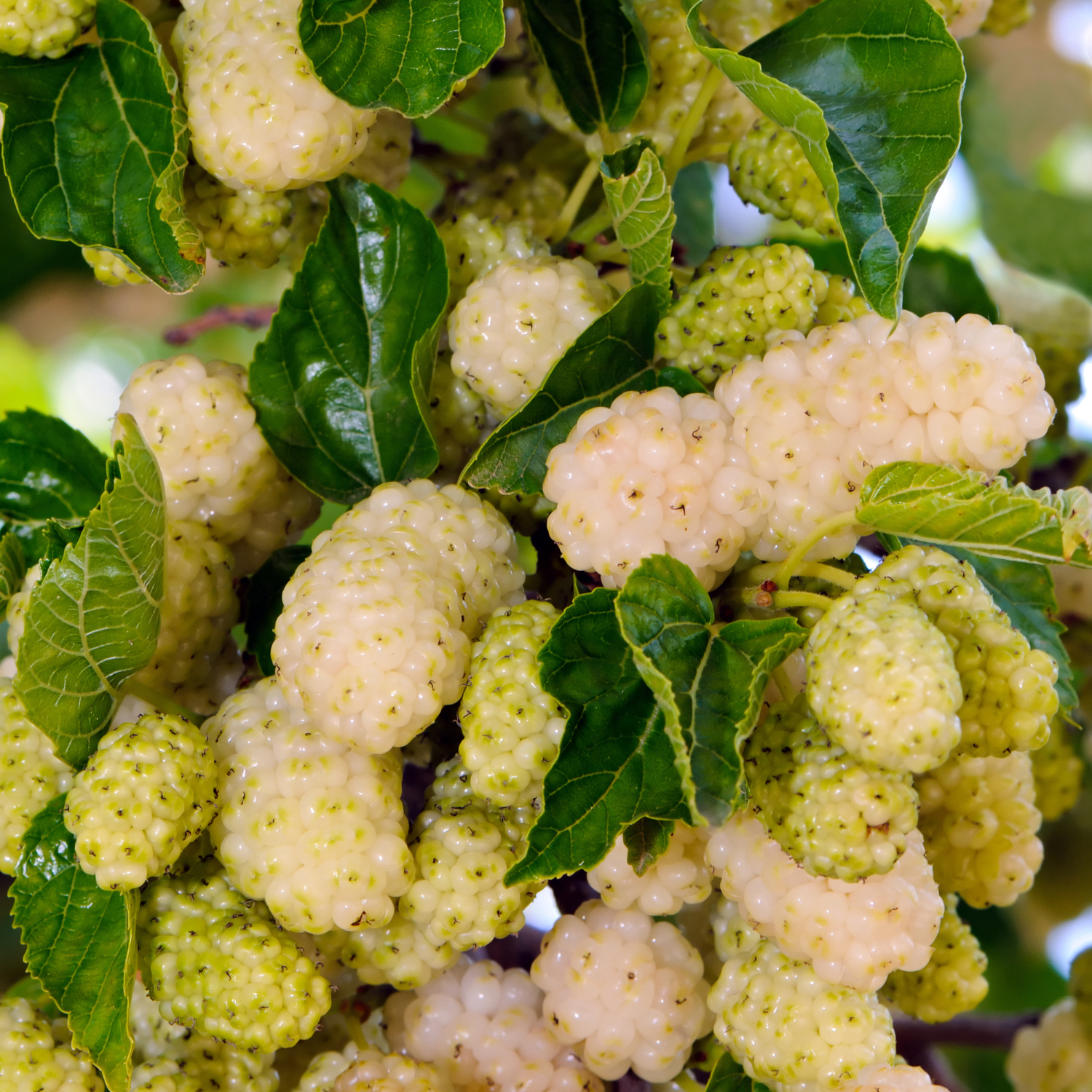 Біла "Медова" шовковиця одна з найврожайніших сортів. За один сезон дерево дає до 35 кг солодких ягід. Дозрівання плодів проходить в 3 етапи.