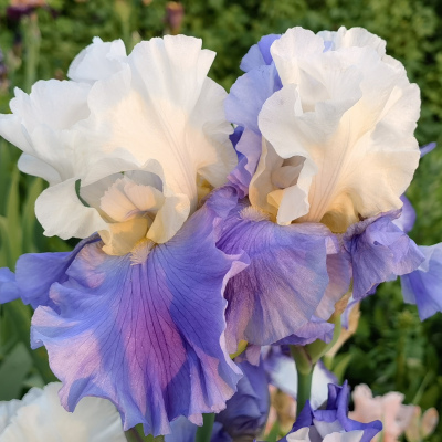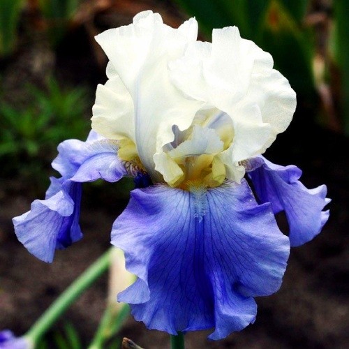 Цей чарівний сорт бородатого ірису вражає ніжним контрастом білосніжних нижніх пелюсток і світло-блакитного верхів’я. "Stairway to Heaven" ніби зійшов із небес, щоб подарувати вашій клумбі легкість, світло та гармонію. Витончені гофровані пелюстки випромінюють спокій і чистоту, а завдяки невибагливості у догляді і зимостійкості сорт заслужено став улюбленцем багатьох садівників.