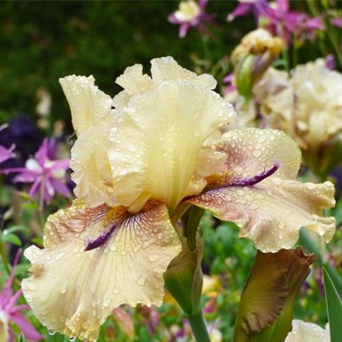 Цей унікальний бородатий ірис зачаровує поєднанням кремово-зелених пелюсток і глибоких фіолетових акцентів у вигляді «рогів» та борідок. "Thornbird" немов живописний акцент, що дарує вашій клумбі яскраву індивідуальність та елегантність. Міцний і зимостійкий, цей сорт улюблений серед садівників за простоту догляду і неповторну красу.