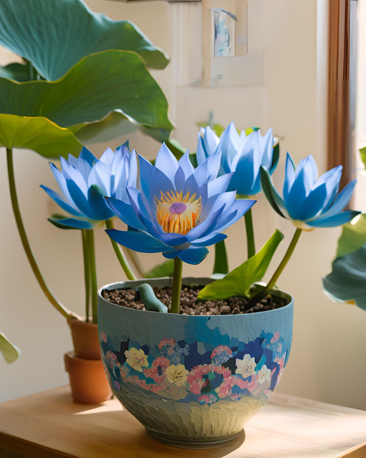 Лотос "Містерія" цвіте 4 разів на рік, забезпечуючи яскраві кольори в вашому домі. З правильним доглядом, ви можете насолоджуватися його квітами цілий рік, що робить його чудовою прикрасою для будь-якого простору.