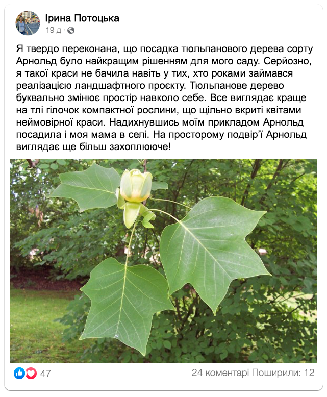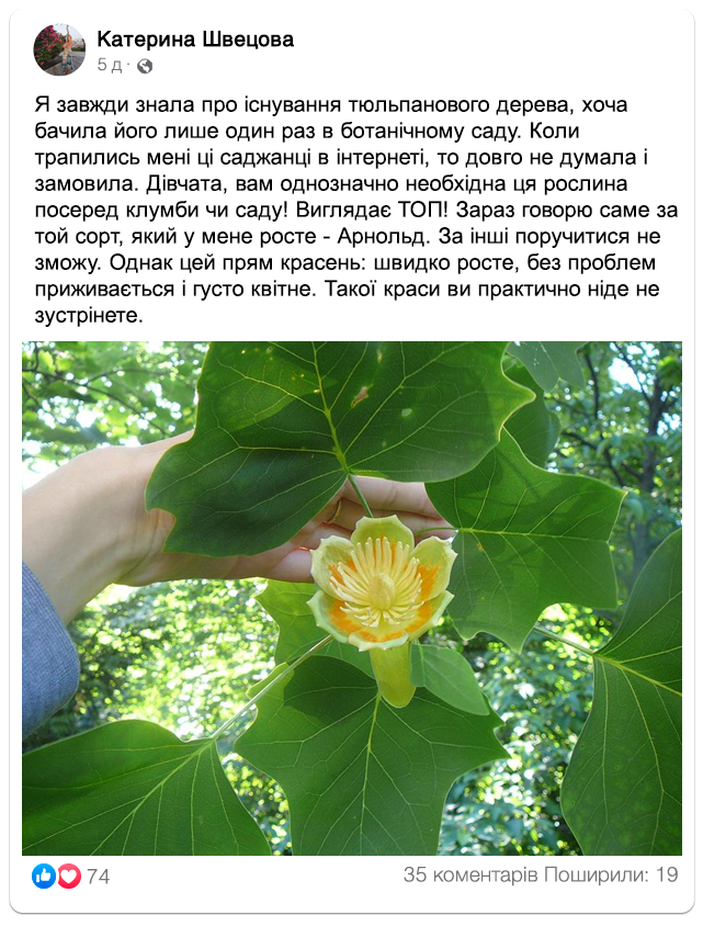 Замовляйте саджанці тюльпанового дерева “Арнольд” просто зараз: